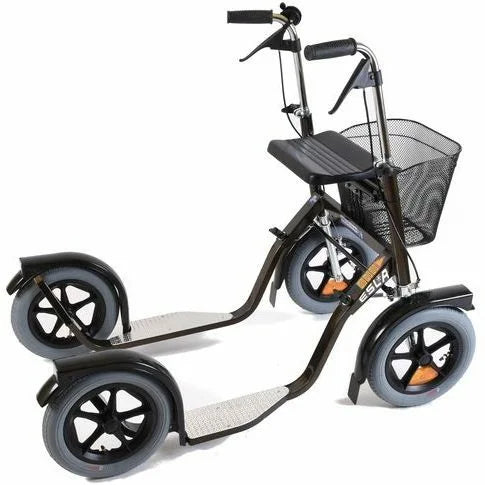 Jalkatilaa jää riittävästi ergonomiseen ja turvalliseen ajoasentoon. Myös alamäkeen ajettaessa ajoasennon painopiste pysyy riittävän takana turvallisena.CityMaxin vankka teräsrunko, tasapainojousitettu kaksoistanko-ohjaus ja alaspäin levenevä kolmiorakenne tekevät laitteesta stabiilin ja turvallisen käyttää.